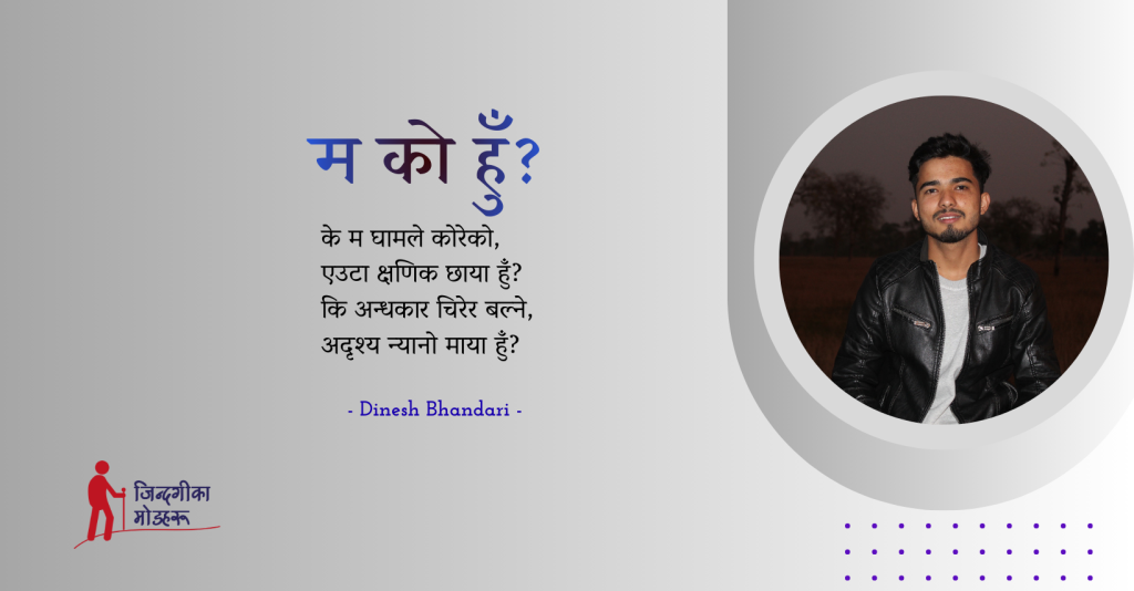 कसैले भने मान्छे हुँ म,सृष्टिको एक सुन्दर रचना,कसैले भने व्यर्थ छु म,केवल एक रित्तो सपना । परिभाषा खोज्दा खोज्दै,परिचय नै